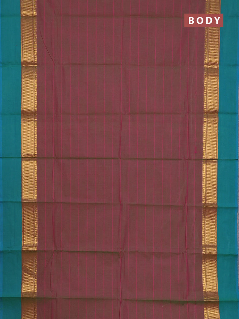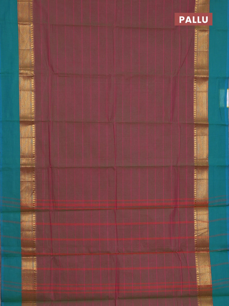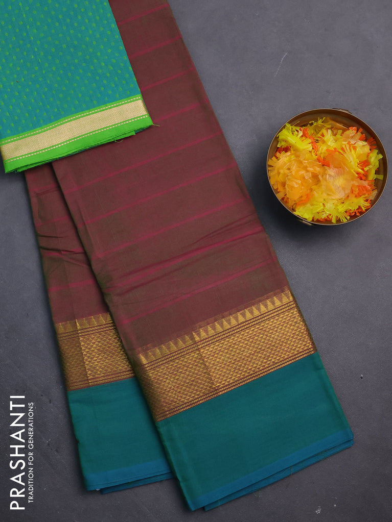 Chettinad cotton saree dual shade of bluish green and dual shade of maroon with thread woven buttas and long rettapet thread woven border