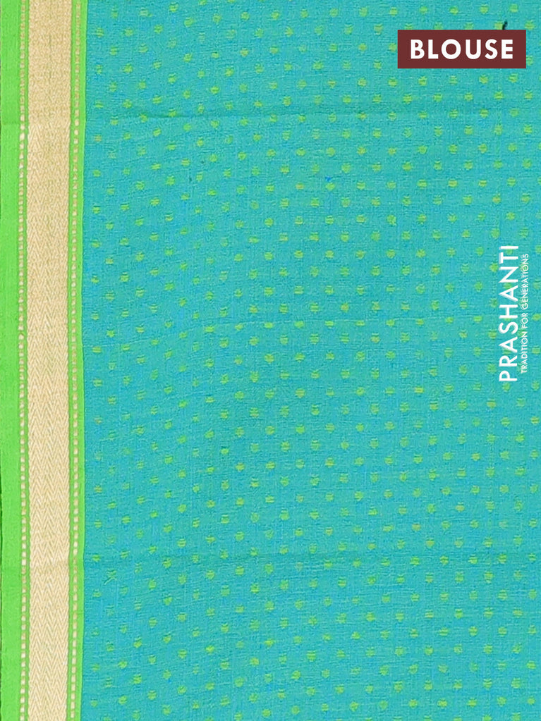 Chettinad cotton saree dual shade of green and blue with thread woven buttas and zari woven border