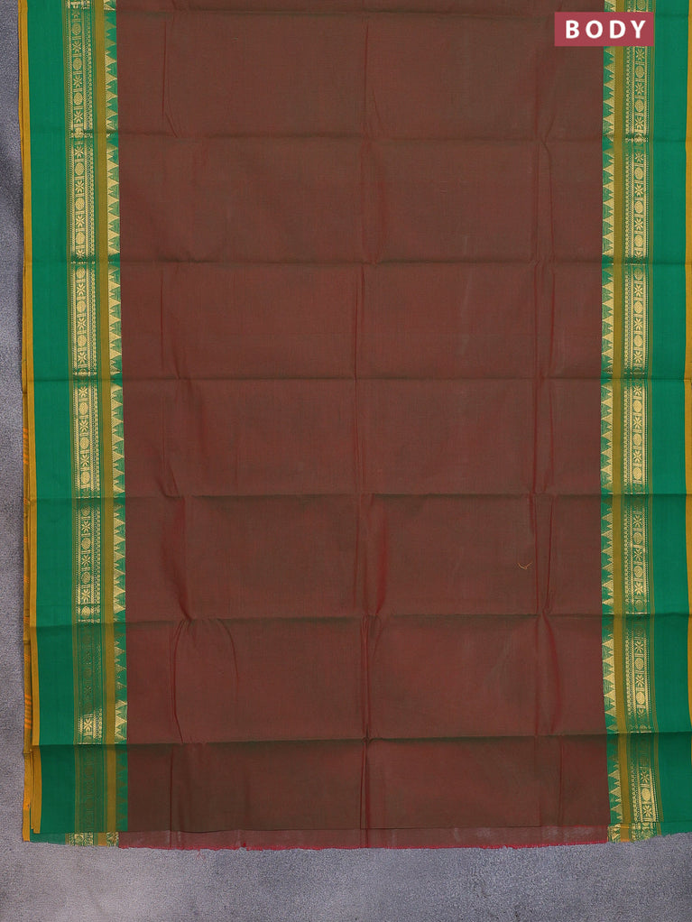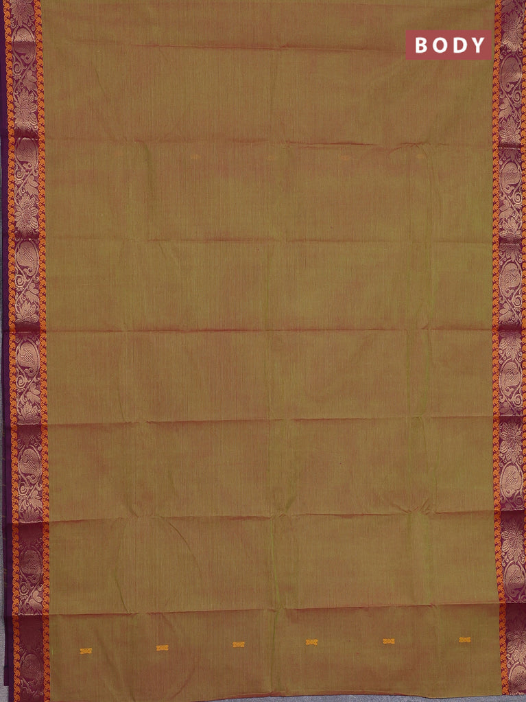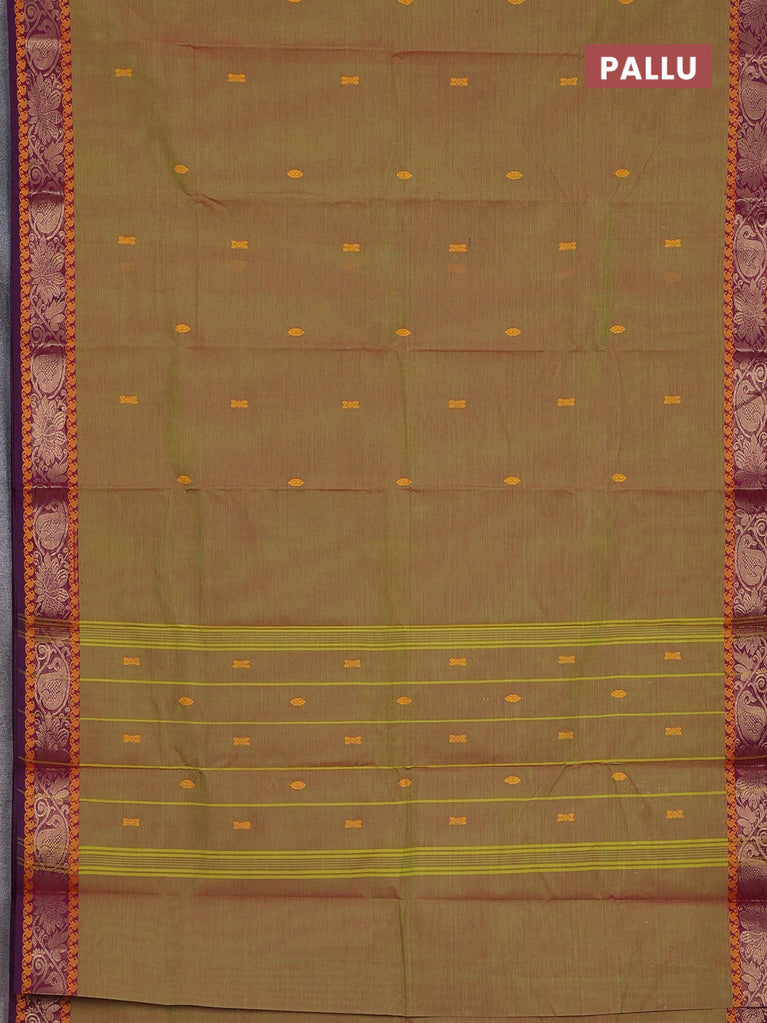 Chettinad cotton saree manthulir green and mustard shade with thread woven buttas and temple design zari border