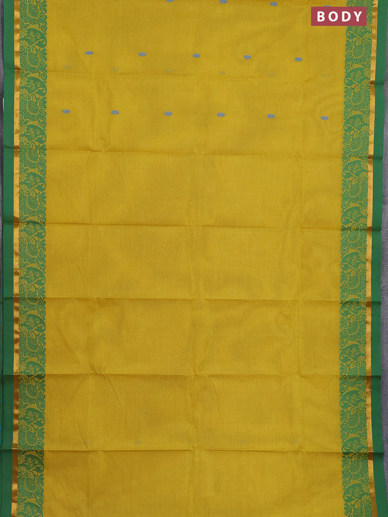 Chettinad cotton saree manthulir green and mango yellow with thread woven buttas and thread & zari woven border