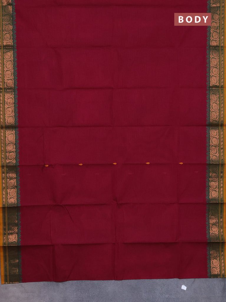 Chettinad cotton saree manthulir green and dark magenta pink with thread woven buttas and zari woven border