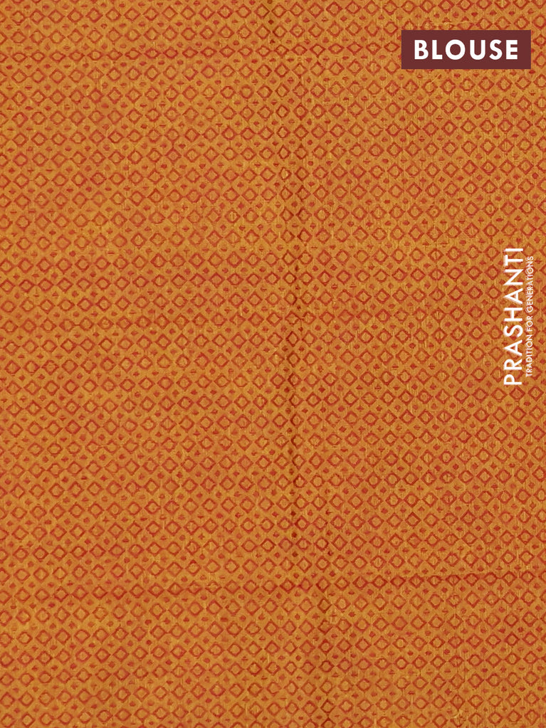 Chettinad cotton saree mango yellow and brown with allover block prints and thread woven border