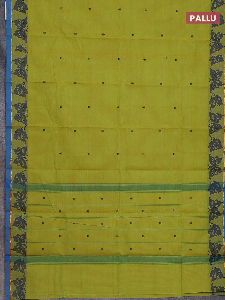 Chettinad cotton saree lime green and cs blue with thread woven buttas and thread & zari woven border