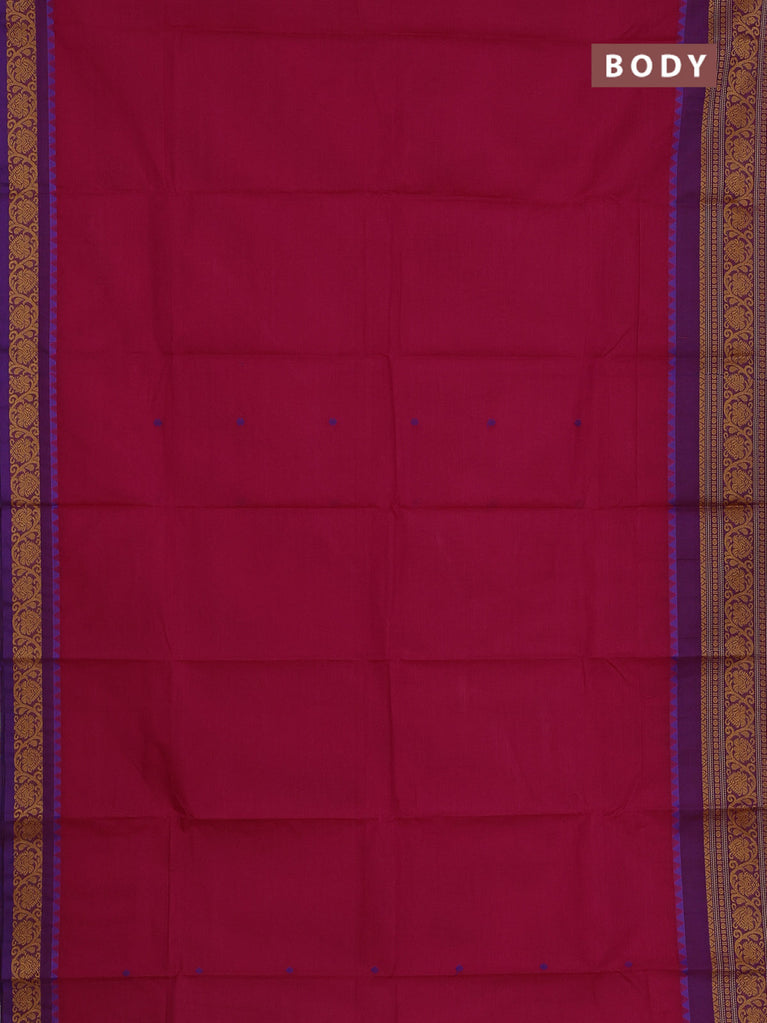 Chettinad cotton saree navy blue and dark magenta pink with thread woven buttas and zari woven border