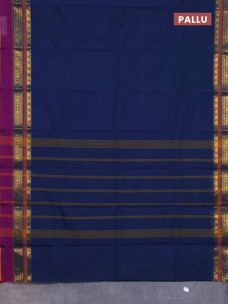 Chettinad cotton saree navy blue and magenta pink with thread woven buttas and rattapet zari woven border