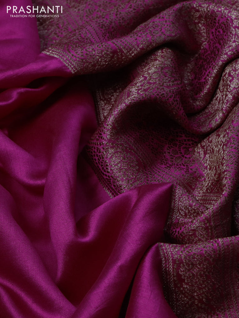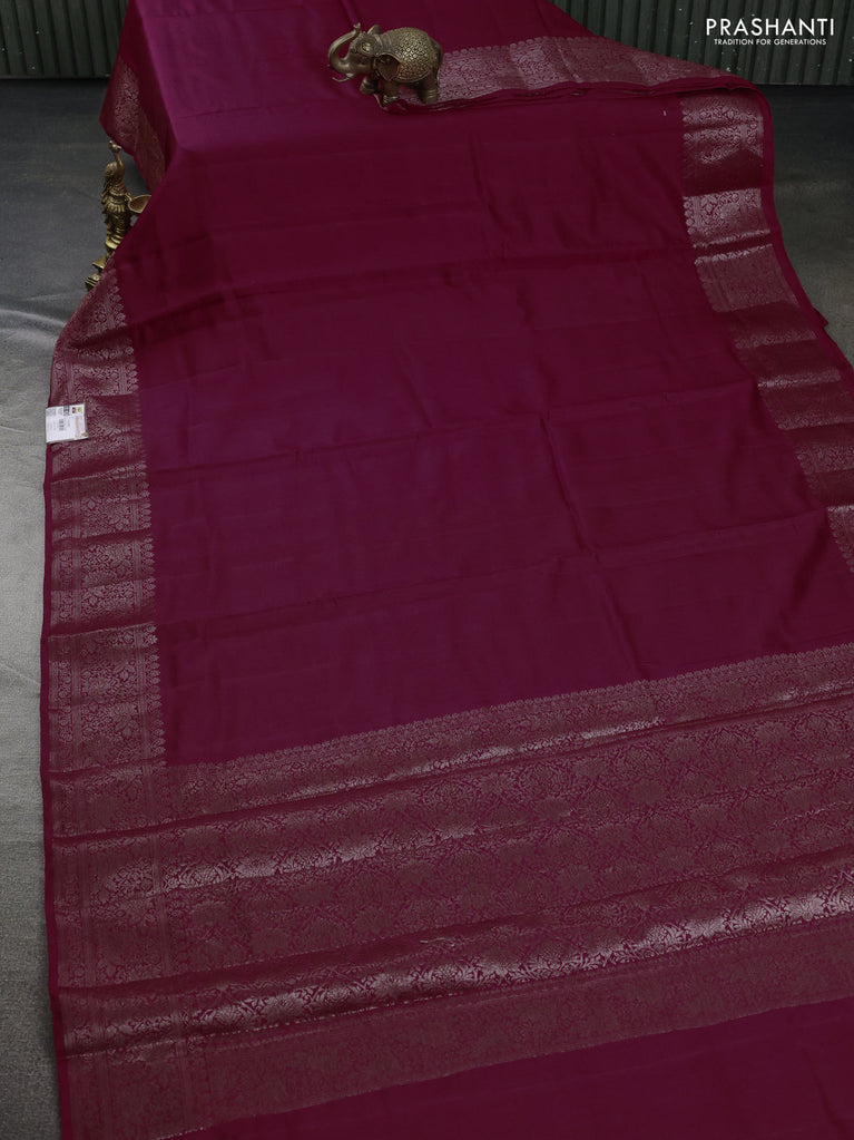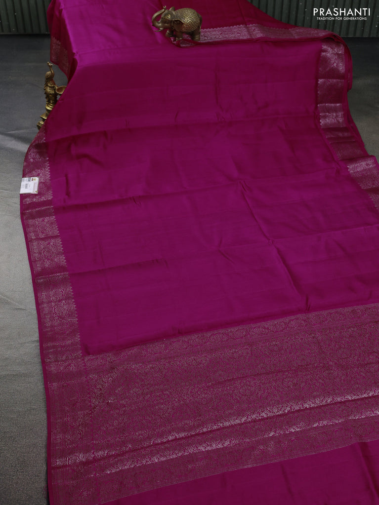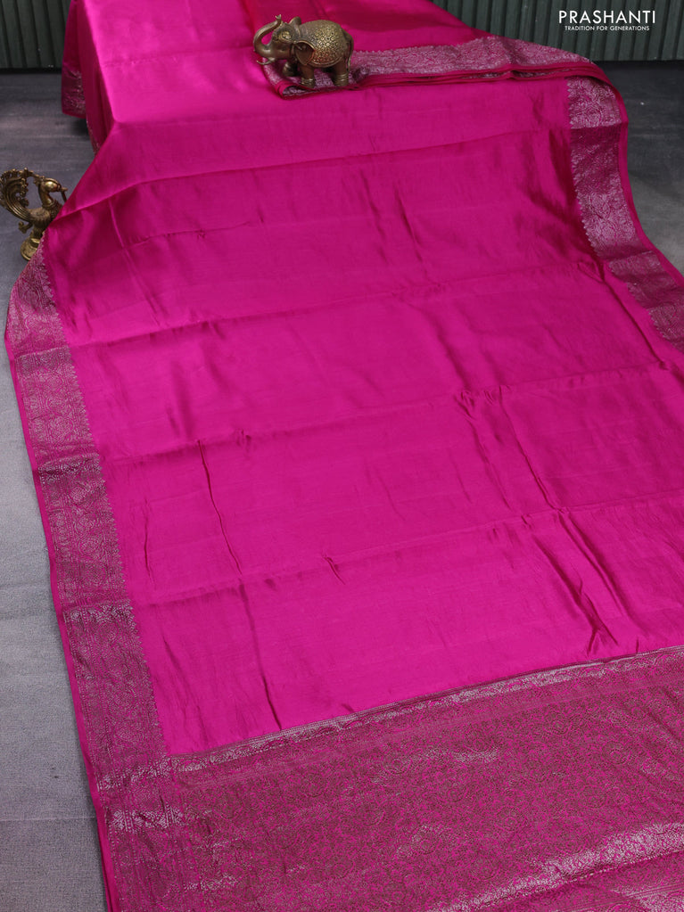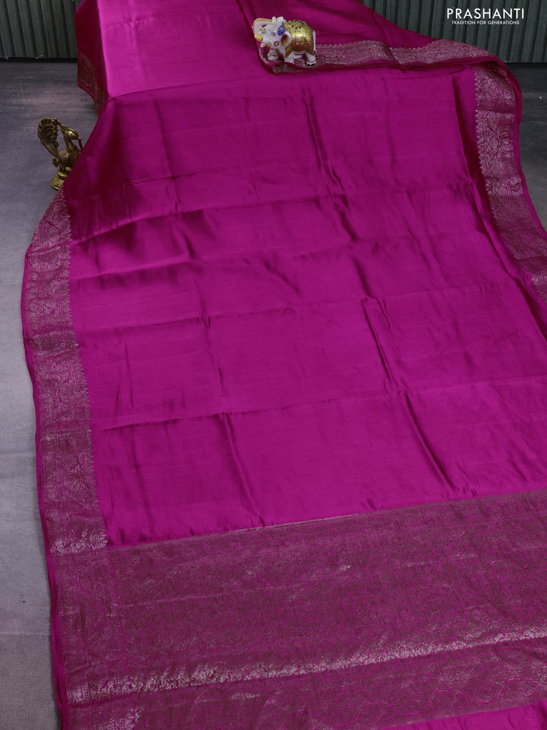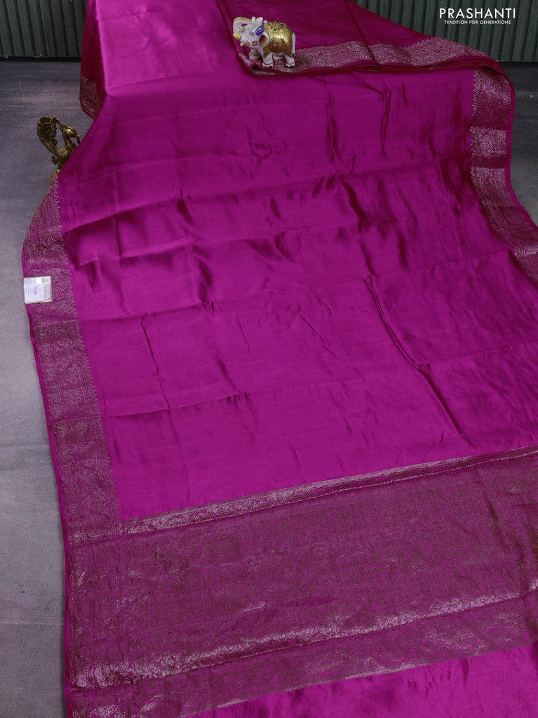 Chiniya silk saree magenta pink and black with plain body and woven border