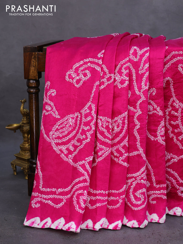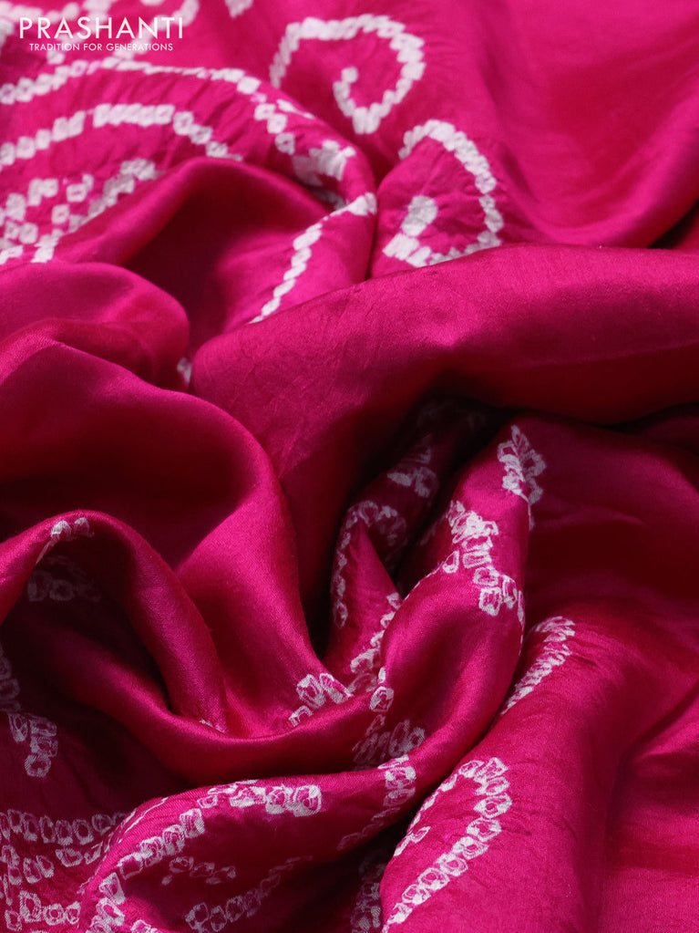 Chiniya silk saree magenta pink and military green with allover zari buttas & bandhini prints and zari woven border