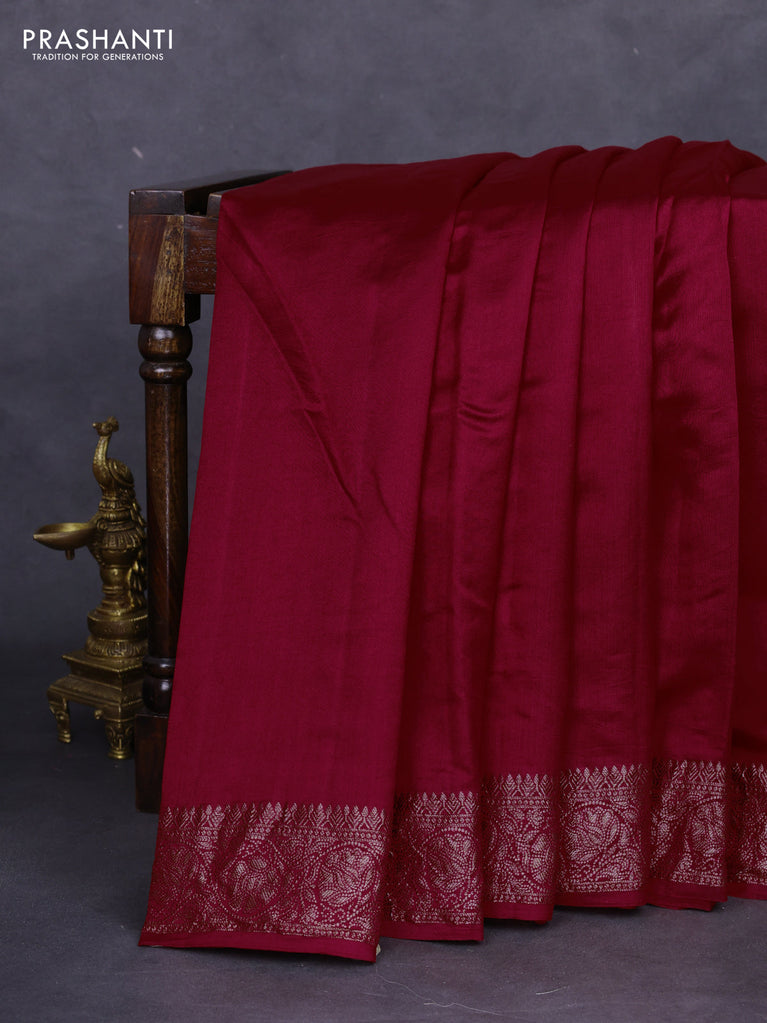 Chiniya silk saree maroon and green with thread & zari woven buttas and woven border
