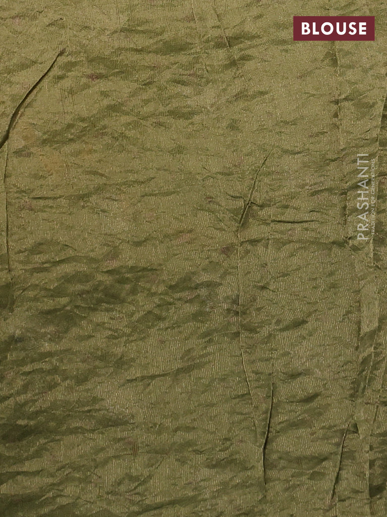 Chiniya silk saree mehendi green with allover zari buttas & bandhini prints in borderless style