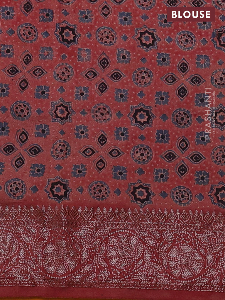 Chiniya silk saree mustard yellow and teal shade with woven buttas & digital prints and zari woven border