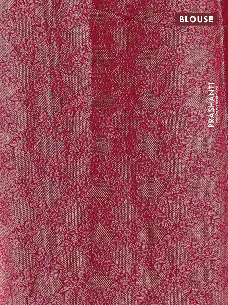 Chiniya silk saree wine shade with allover silver zari buttas & bandhini prints and silver zari woven border