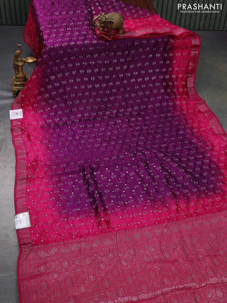 Chiniya silk saree purple and pink with allover bandhani prints & zari weaves and zari woven border