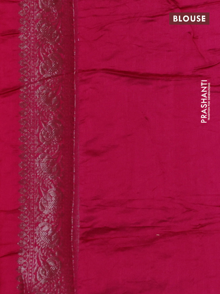 Chiniya silk saree pink with allover silver zari weaves and zari woven simple border