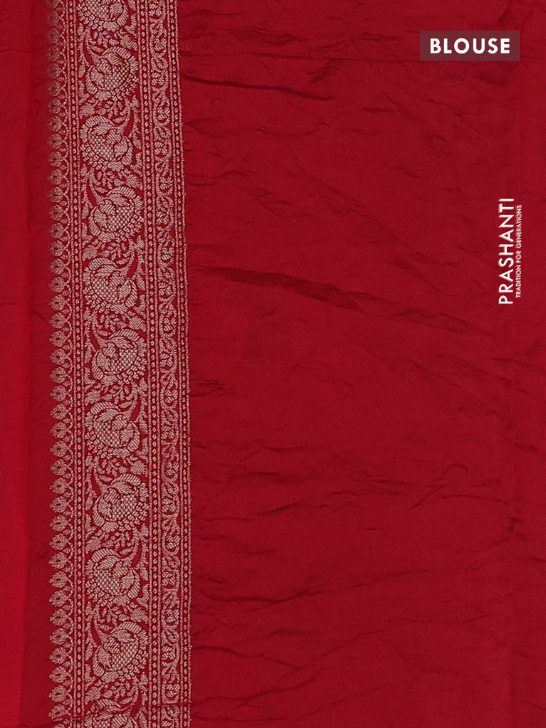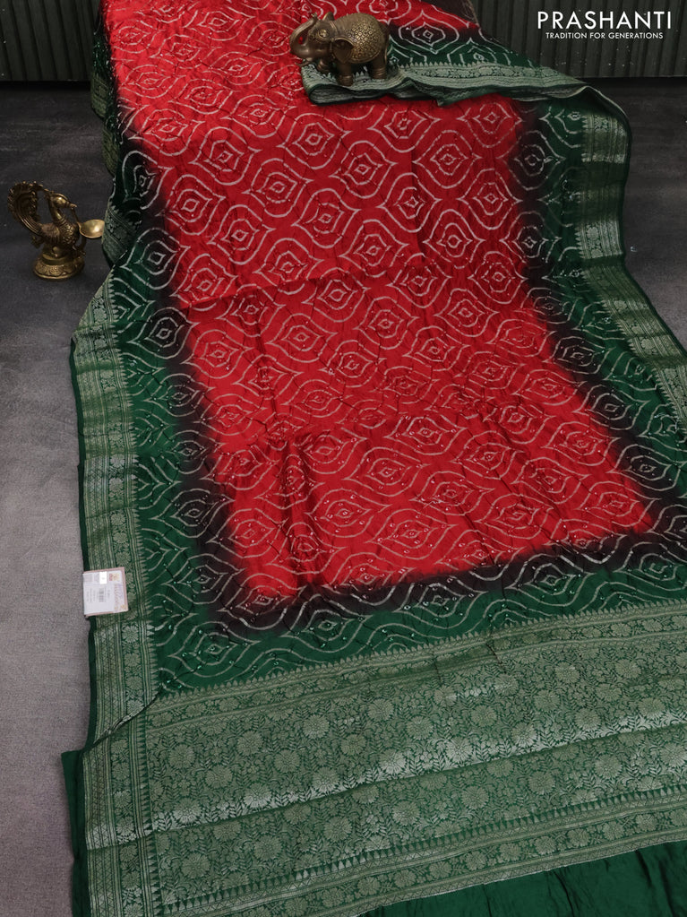 Chiniya silk saree red and green with allover bandhani prints & zari weaves and zari woven border