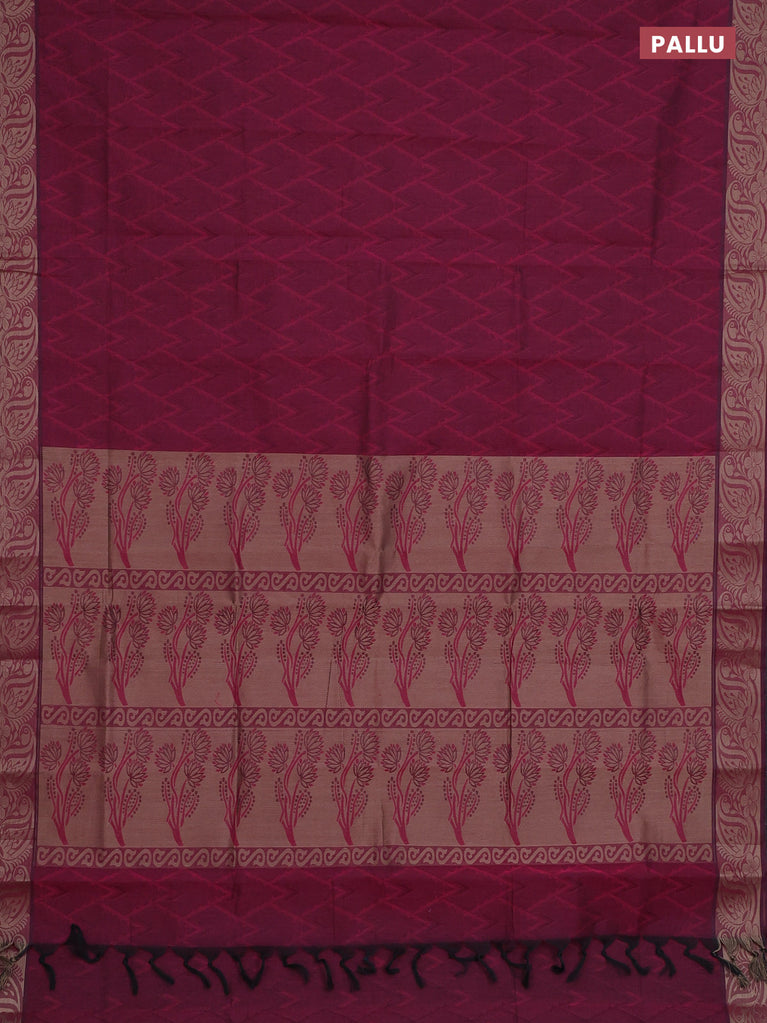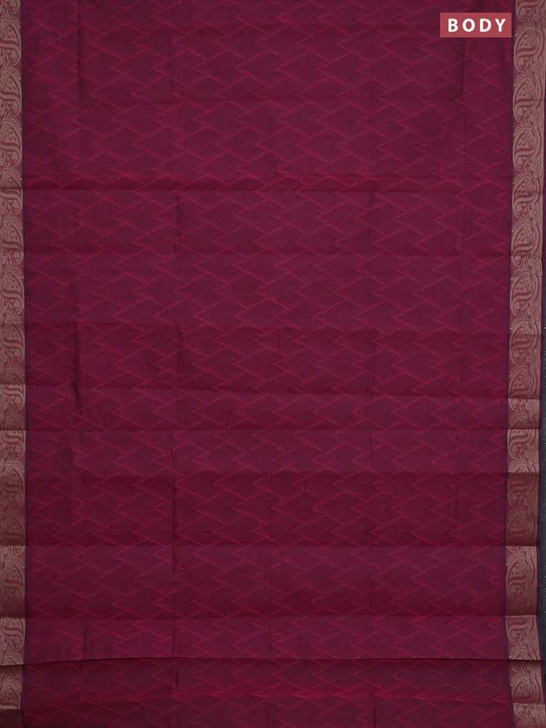 Coimbatore cotton saree dark magenta pink with allover self emboss and thread woven border
