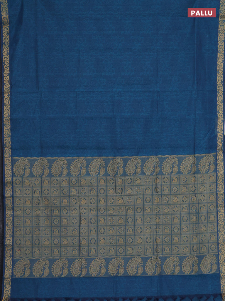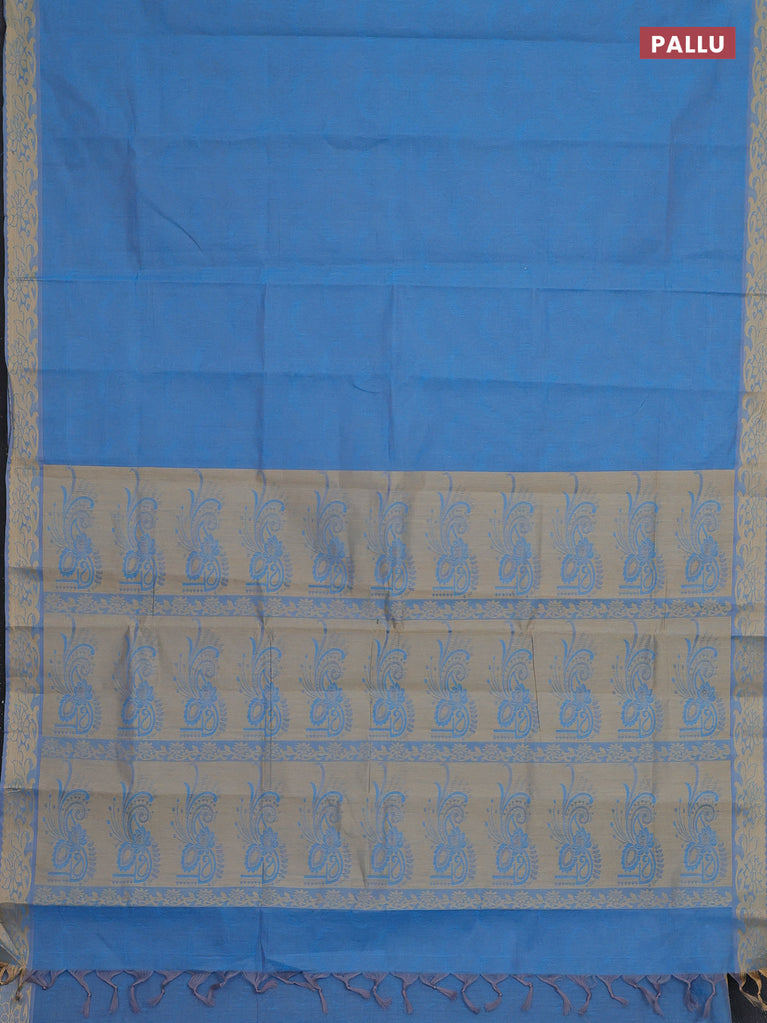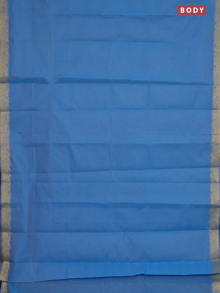Coimbatore cotton saree cs blue and sandal with allover self emboss and thread woven border