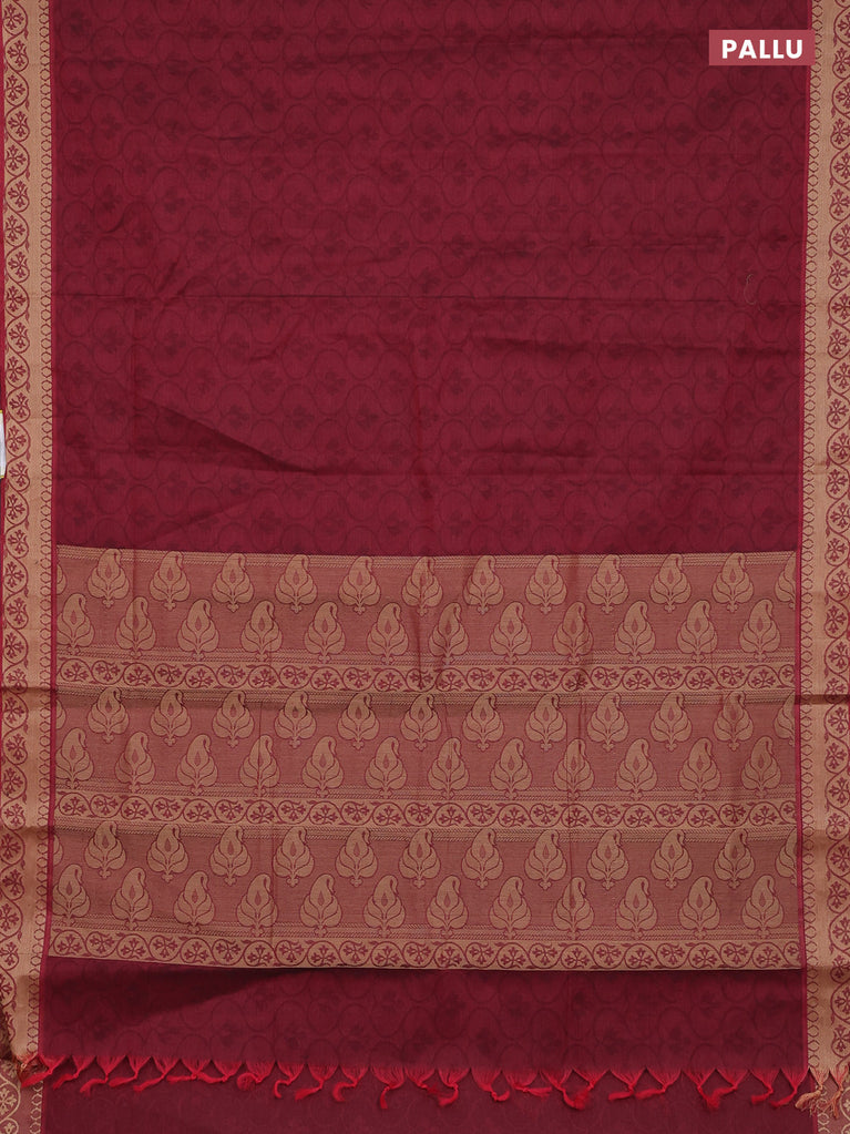 Coimbatore cotton saree deep maroon and sandal with allover self emboss and thread woven border