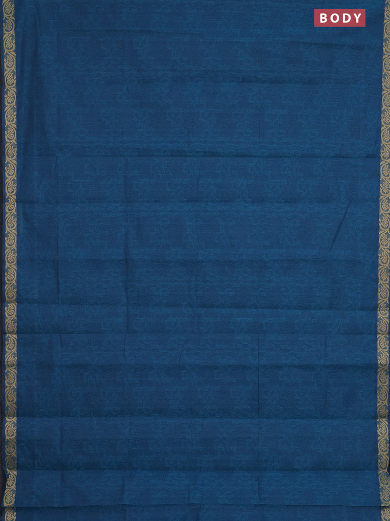 Coimbatore cotton saree blue with allover self emboss and thread woven border