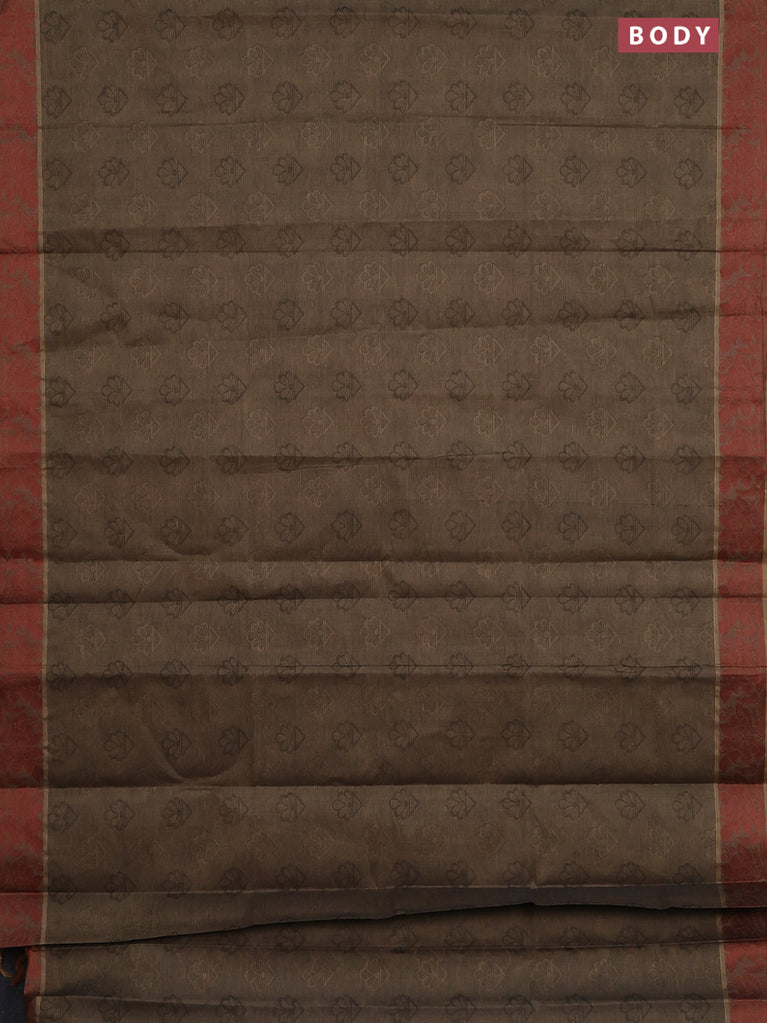Coimbatore cotton saree brown shade with allover self emboss and thread woven border