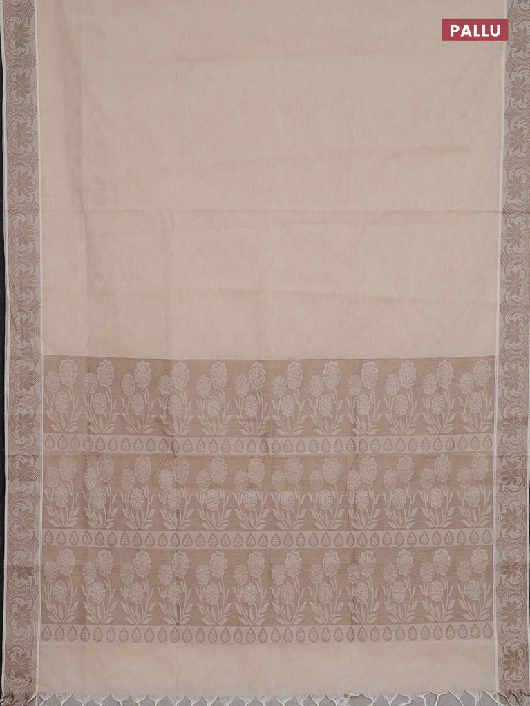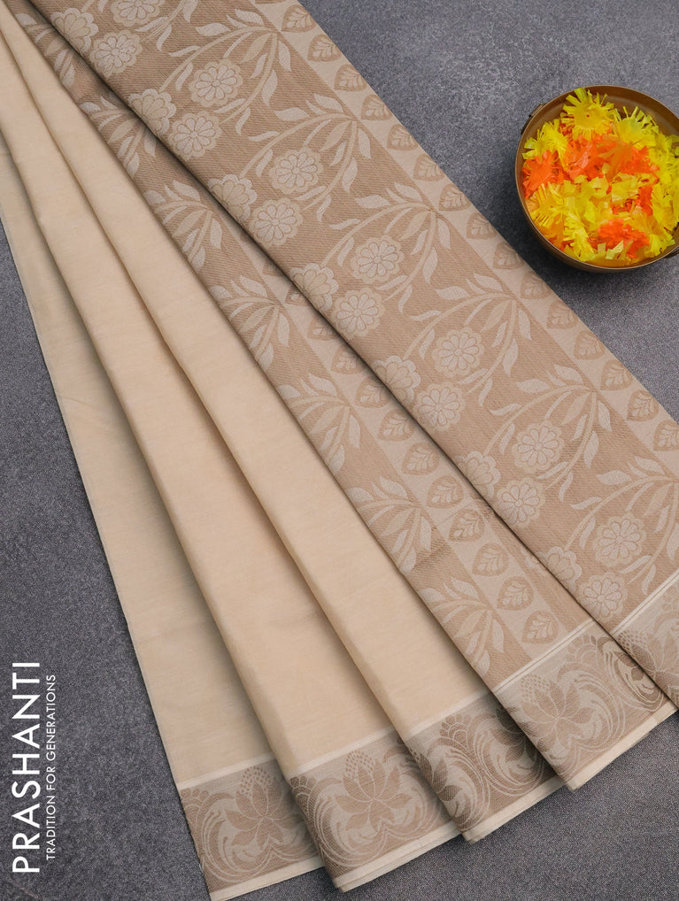Coimbatore cotton saree cream and beige with allover self emboss and thread woven border