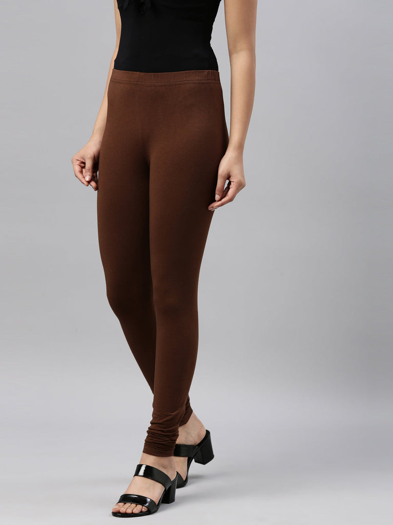 Dark Brown Cotton Stretch Ankle Length Leggings