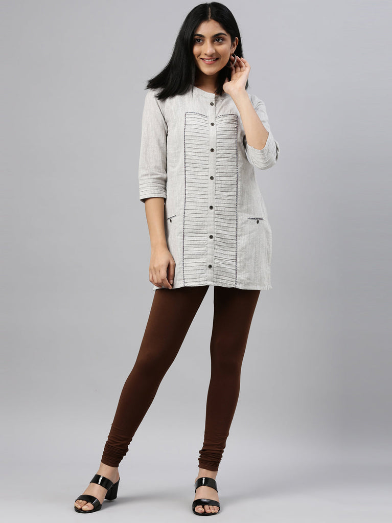 Go the ethnic way with our Solid Brown Cropped Leggings. Made from Cotton & Elastane, it has a elasticised waistband, slim fit & is of 7/8th length.