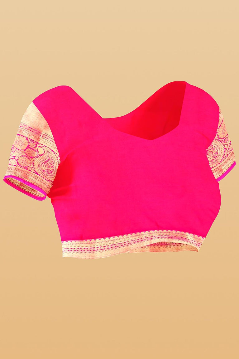 DARK GREEN and CREAM ZARI BUTTA VISCOSE GEORGETTE Saree with BANARASI
