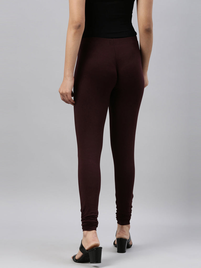 Go chic with a pair of Dark Wine Solid Churidar Leggings. Made from high quality cotton, it has a elasticised waistband & gathers at the hemline.