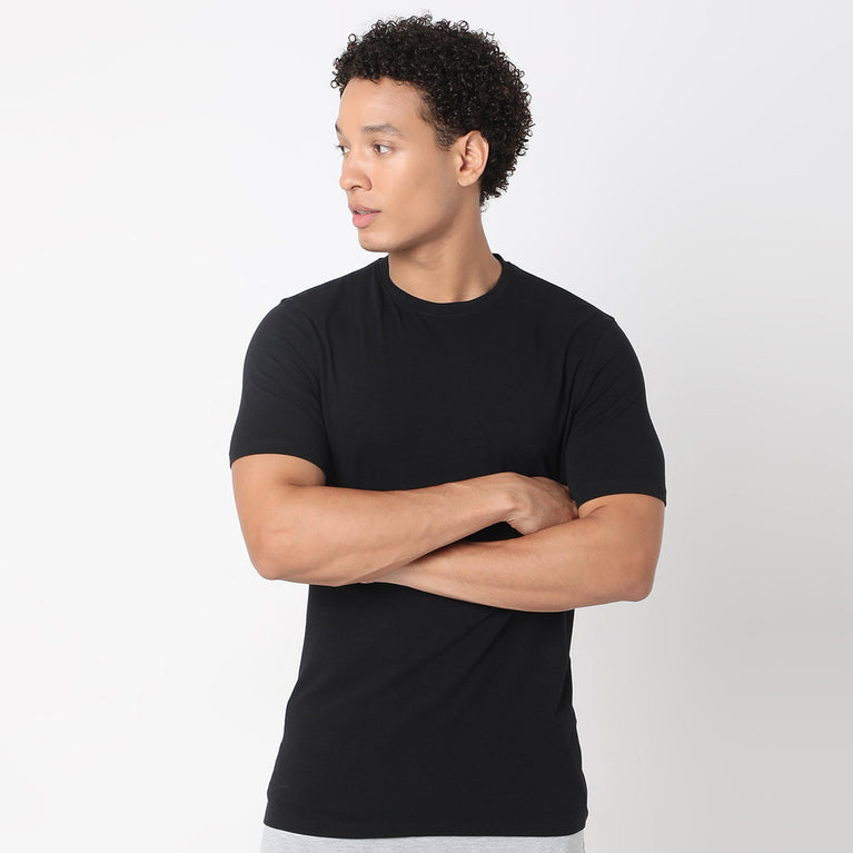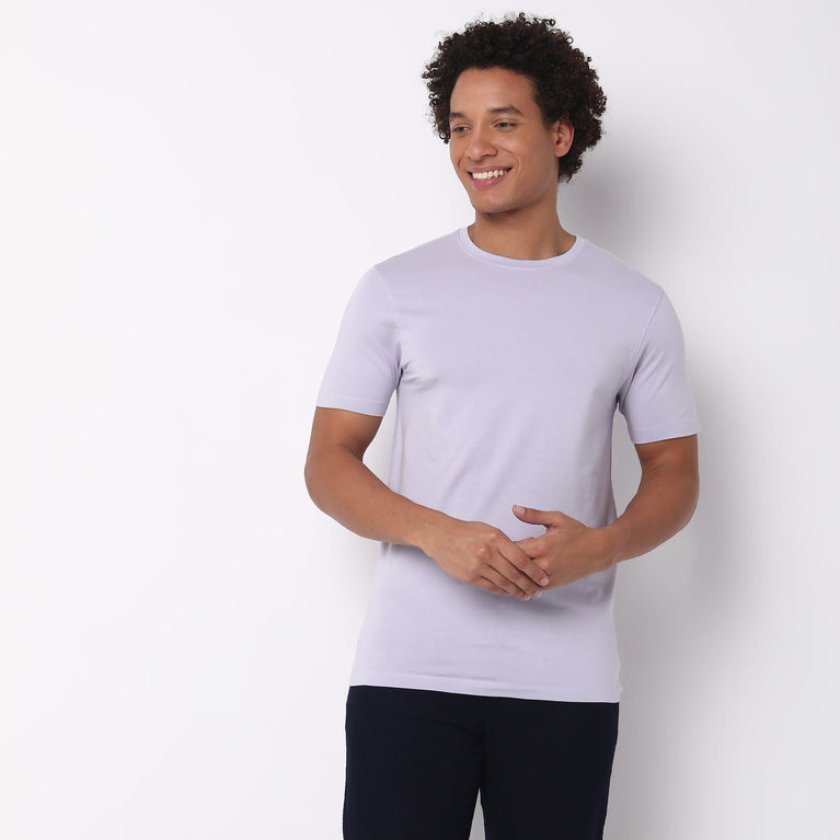 This modern home theme, solid pattern t-shirts has a crew neck and half sleeve. Made from modal cotton mobilon , it is soft and comfortable to wear.