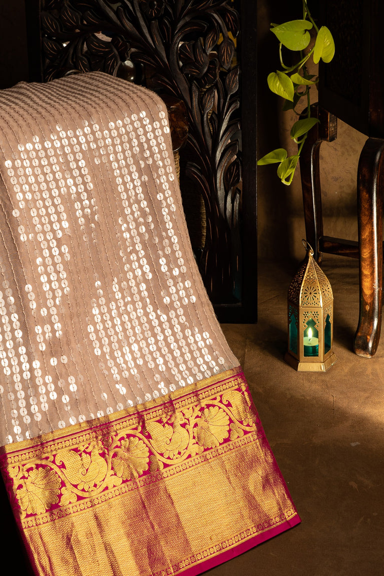 Mandir Blush Pink & Maroon Kanchipuram Jaal Saree
