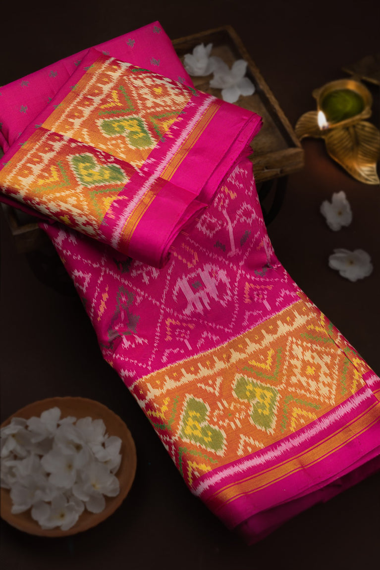 Mandir Pink & Pink Patola Buttis Saree