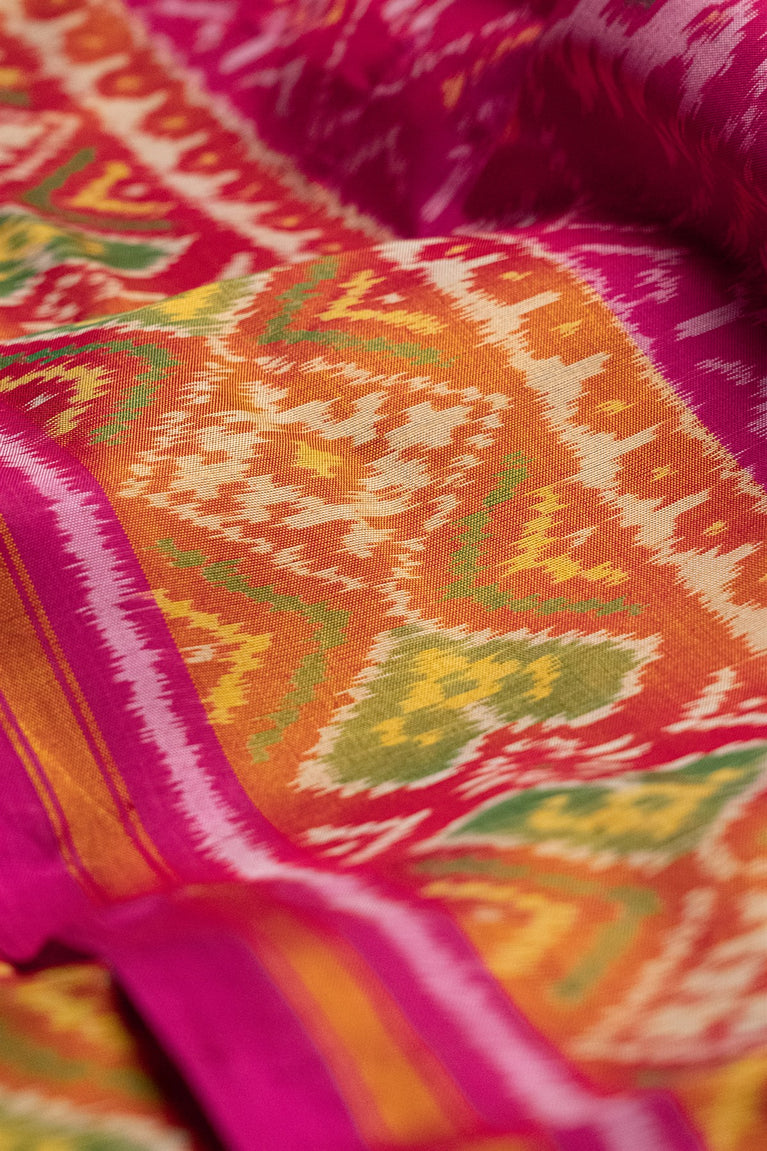 Mandir Pink & Green Ikat Ikat Saree