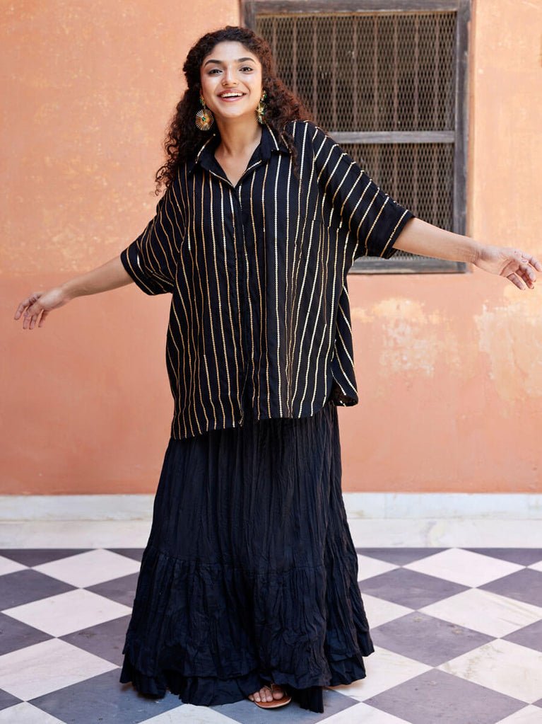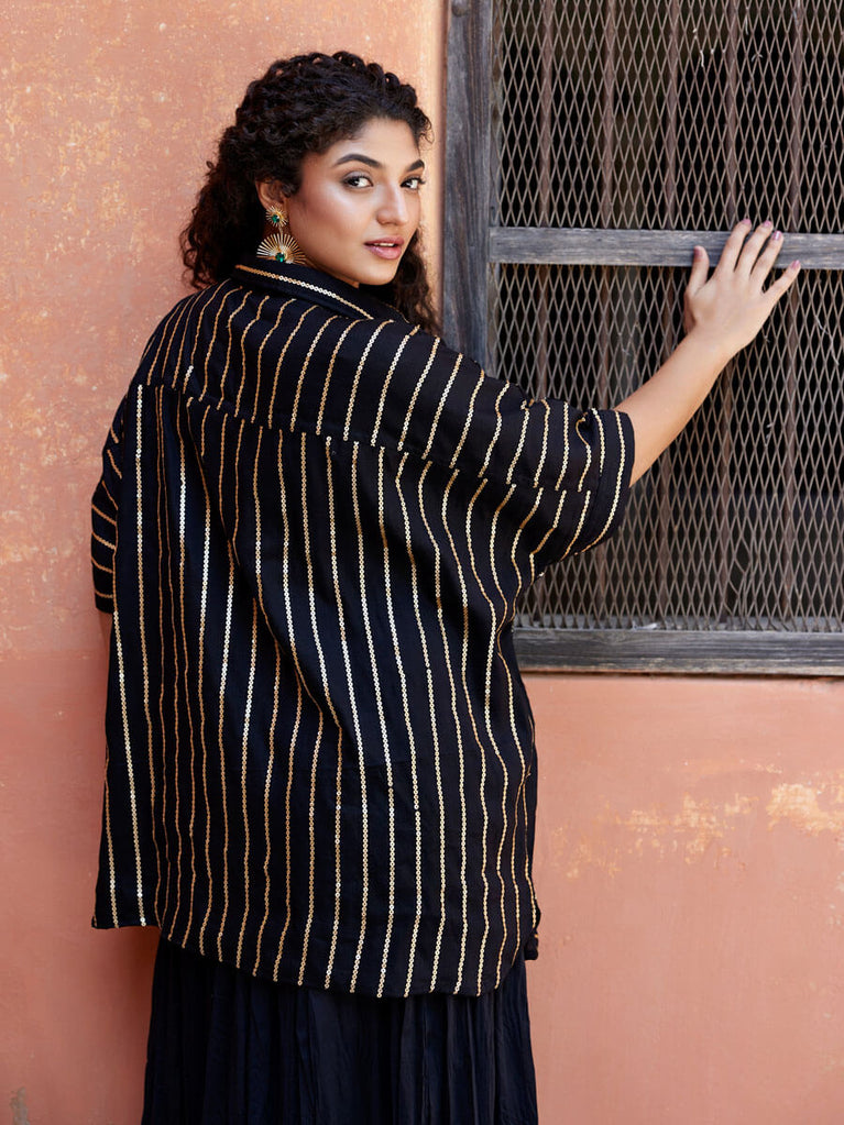 Set of 2 - Hairat Sequined Shirt & Black Trousers