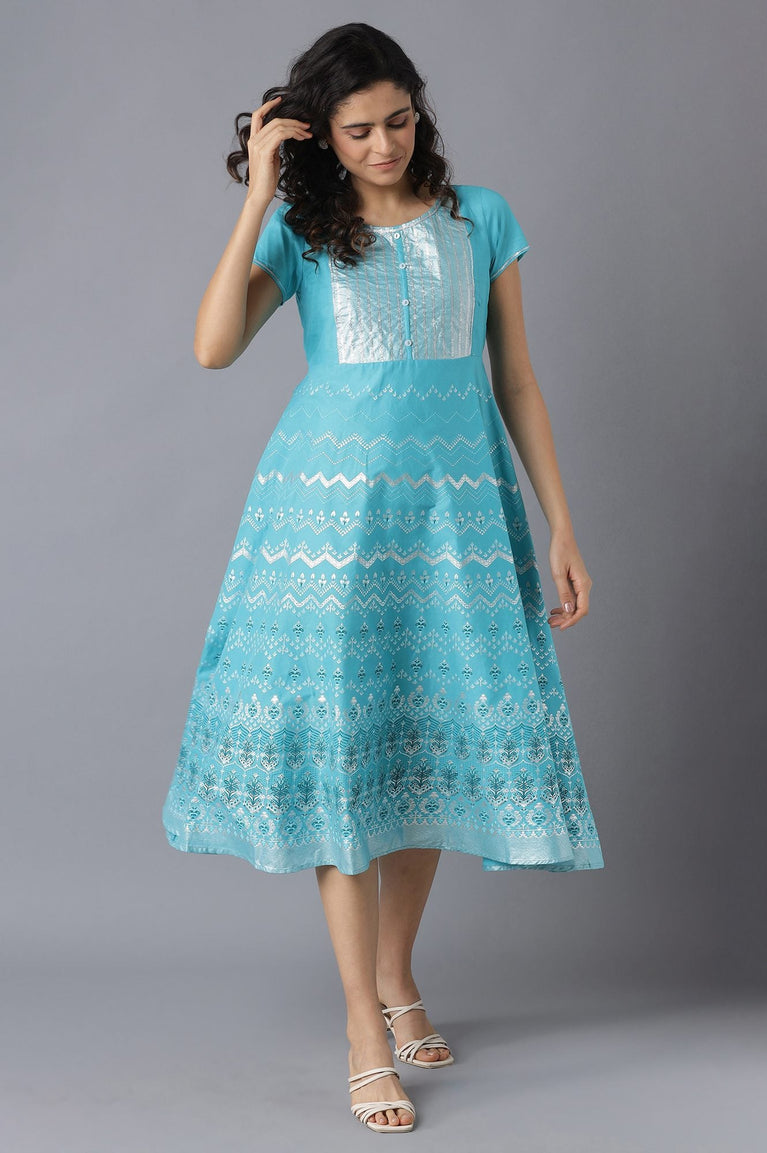 Amp up your styling with this chic blue flared kurta. Designed in circular body detail and kurta features sequin work and comes in round neckline.