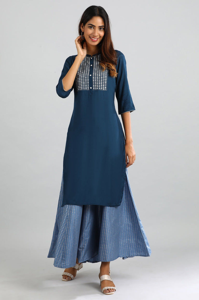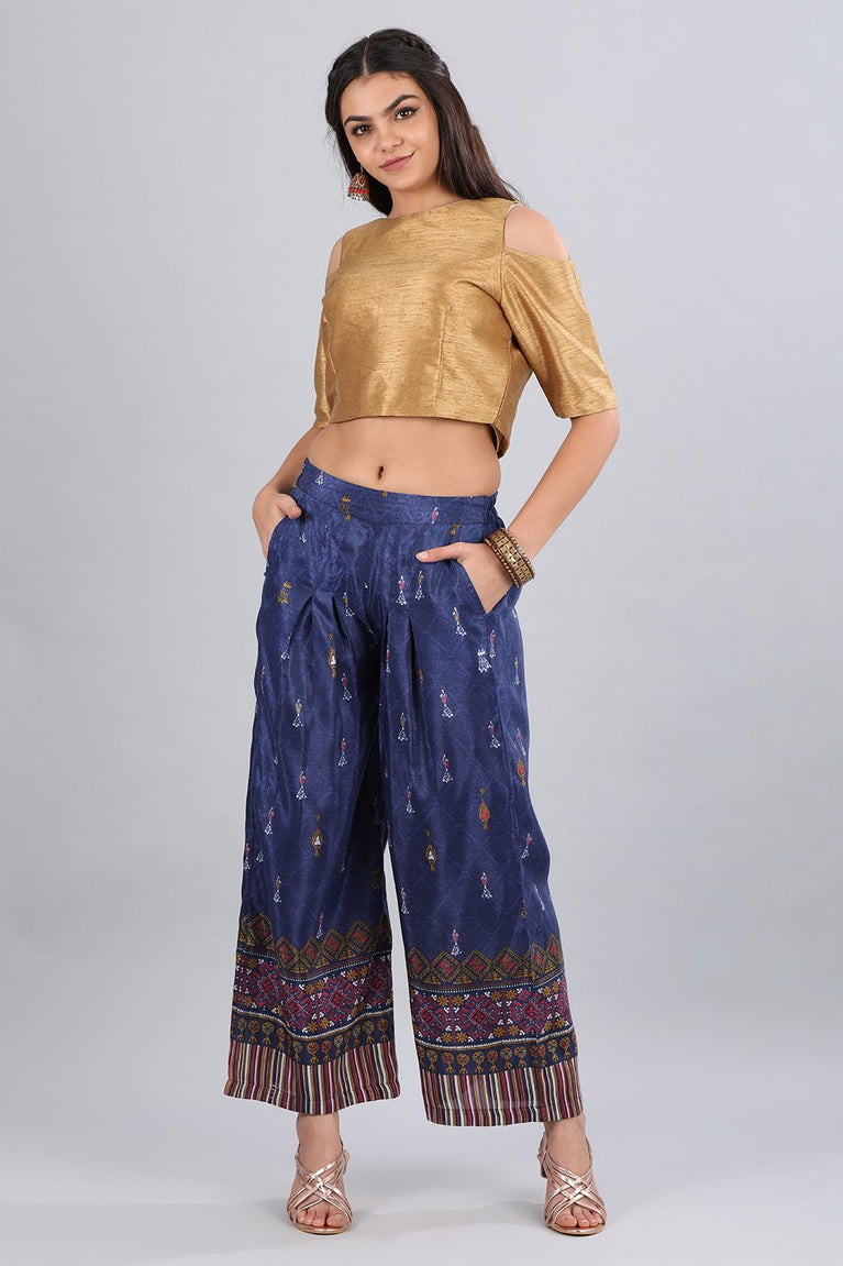 This dark blue solid palazzo is a must-have in your wardrobe. It is stylish and comfortable at the same time. Be it your casual look or want to pair for light occasion, it is a great pick.