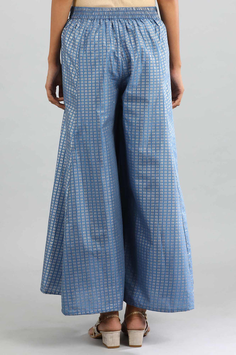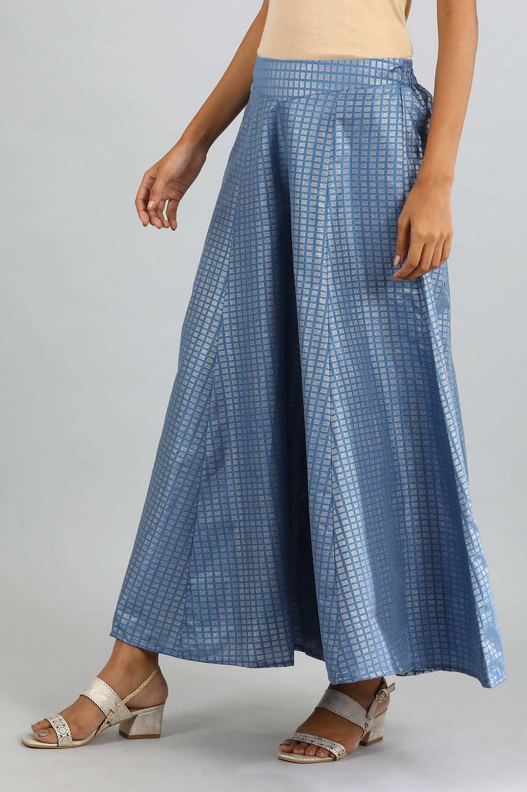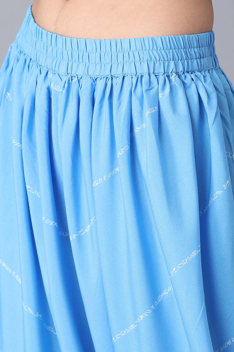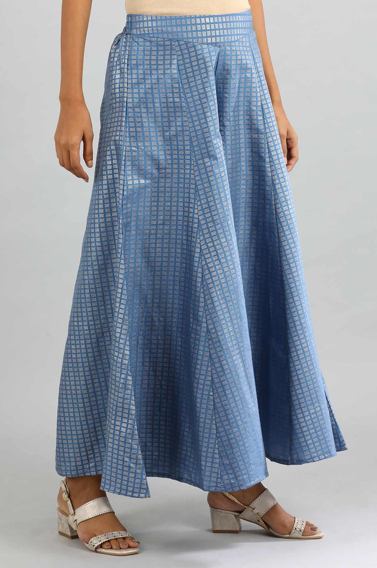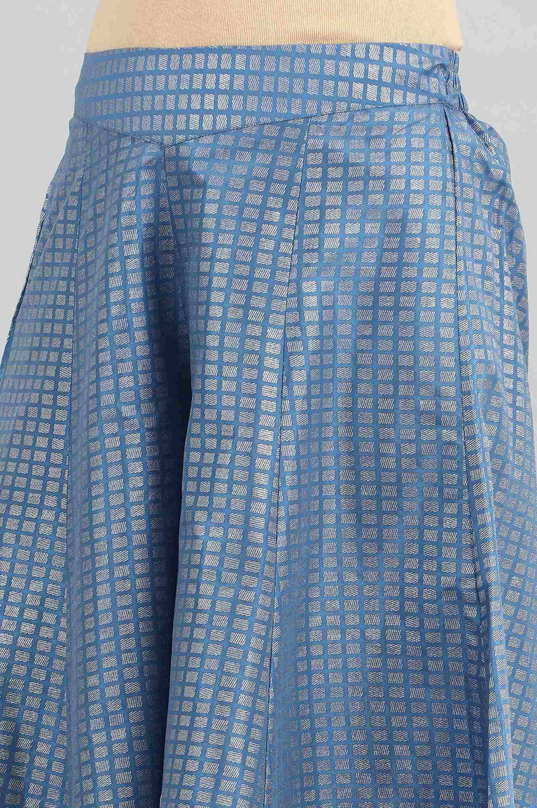 Blue Printed Flared Cotton Salwar With Elasticated Waistband