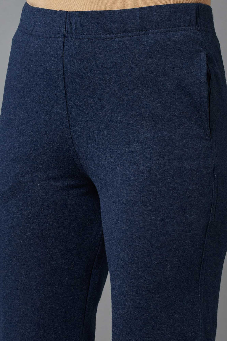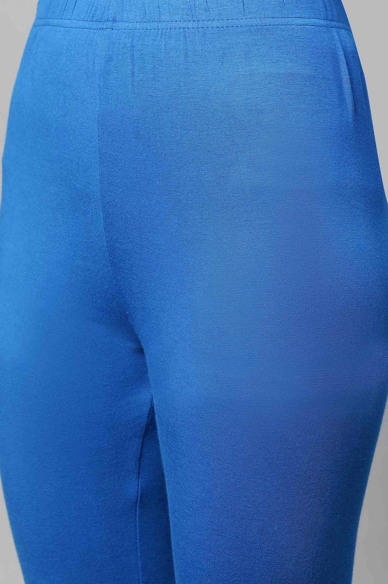 Blue Solid Skinny Fit Cotton Tights With Elasticated Waist