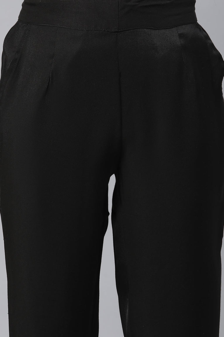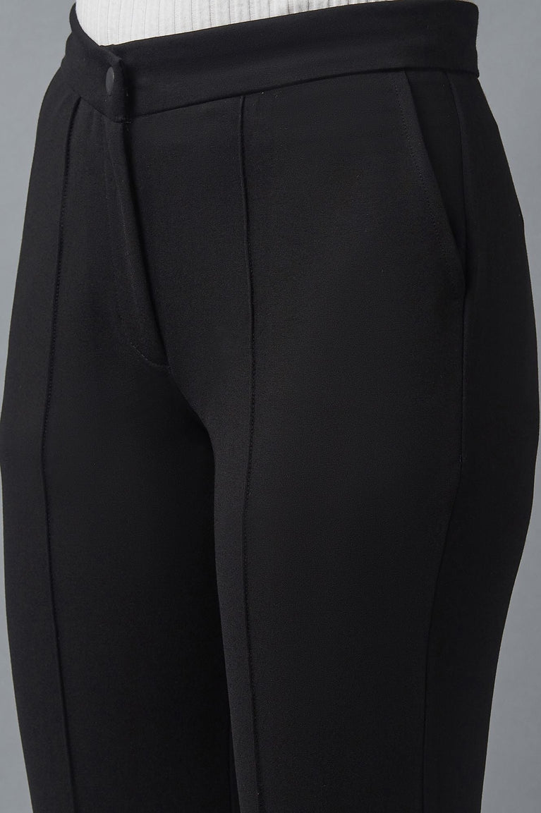 Black Solid Straight Fit Trousers With Pintuck Detail
