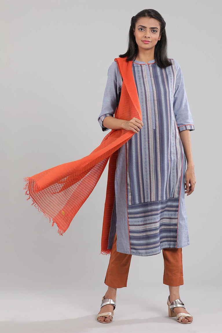 Blue Round Neck Printed kurta
