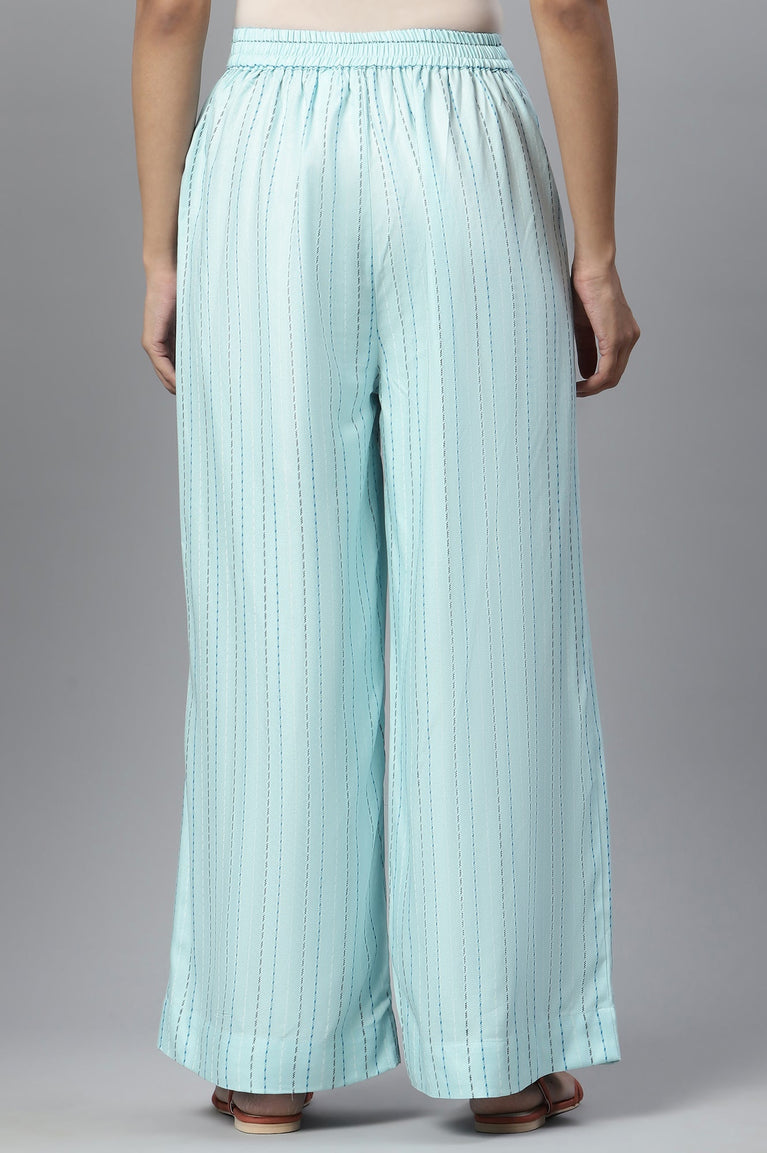 Blue Solid Straight Fit Palazzo With Side Pockets
