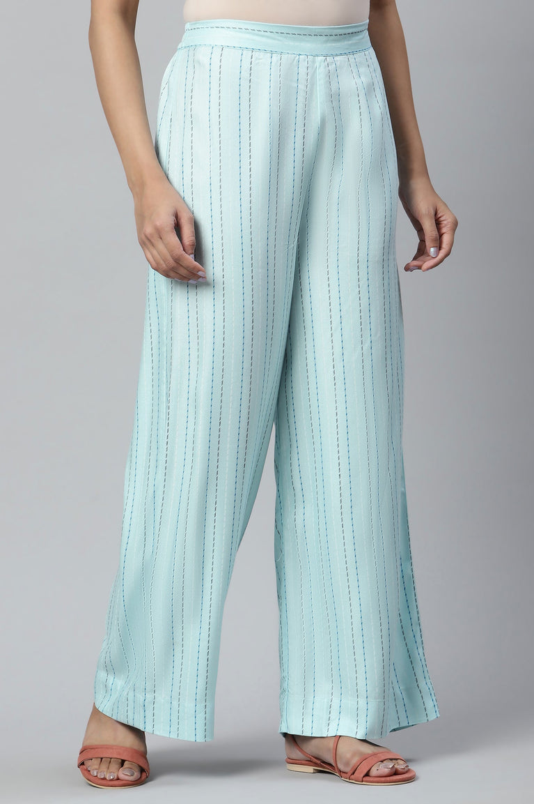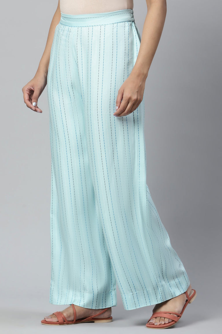 Blue Printed Straight Palazzo