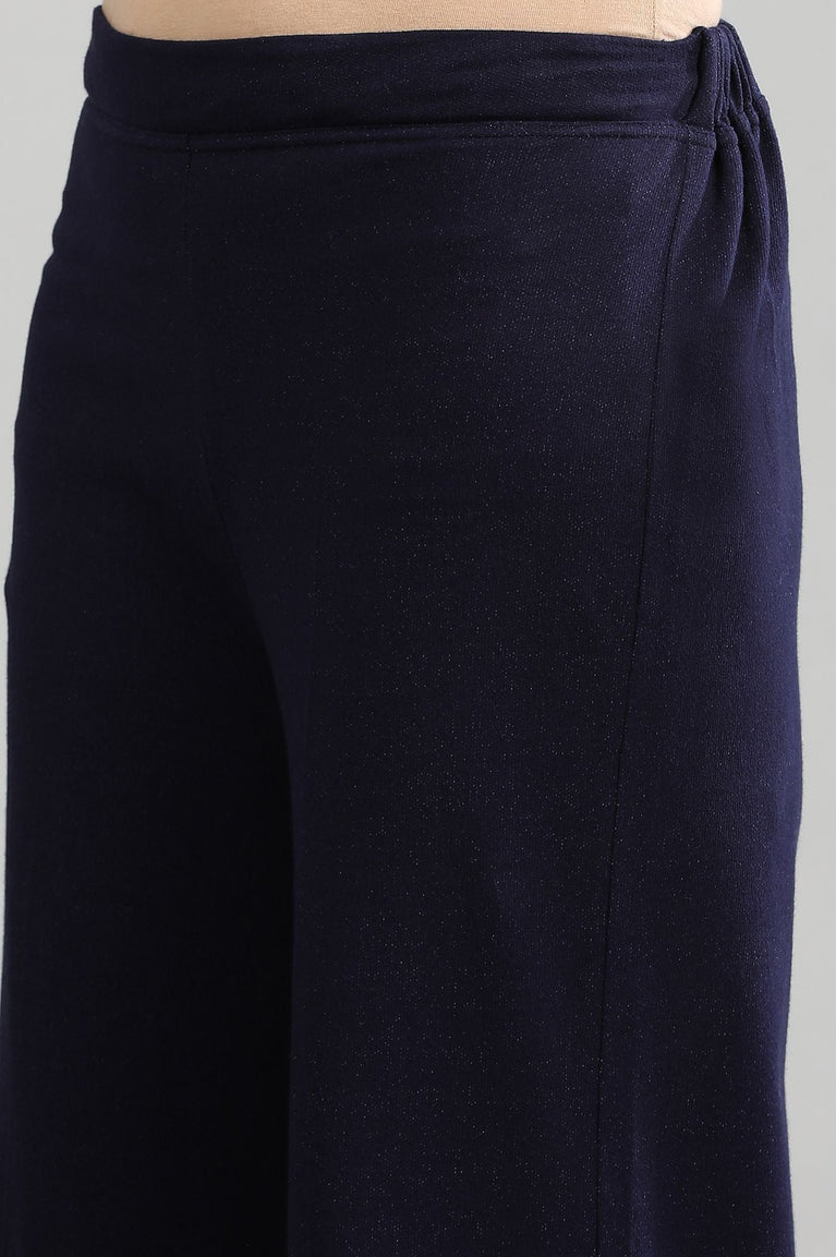 Blue Solid Straight Fit Cotton Pants With Elasticated Waistband