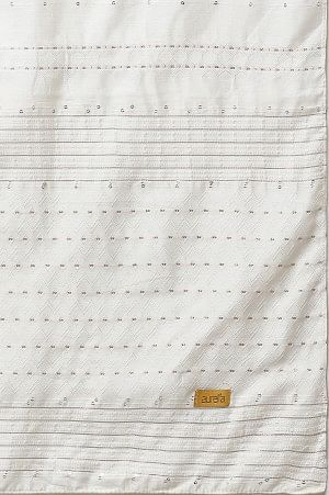 This is a color blocked kurta that features coloured stripes and golden foil printed polka dot pattern. The yoke has been highlighted with glitter sequin embroidery that follows a zig-zag fashion.