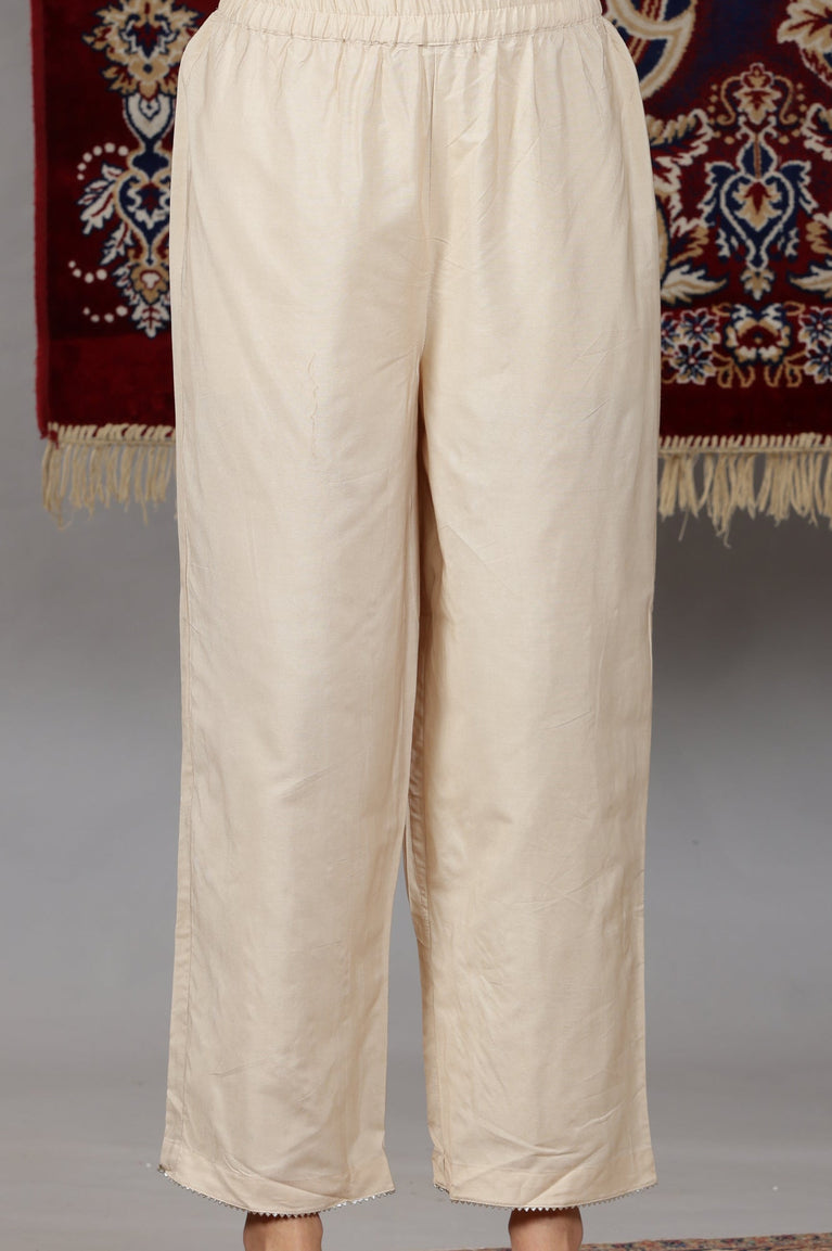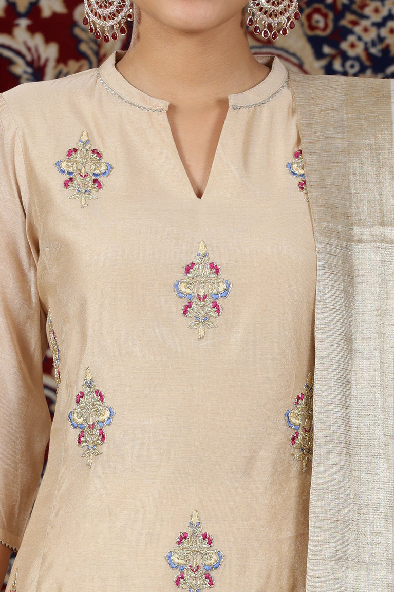 Beige Yarn Dyed Dori Embroidered Anarkali Kurta, Palazzo and Dupatta Set