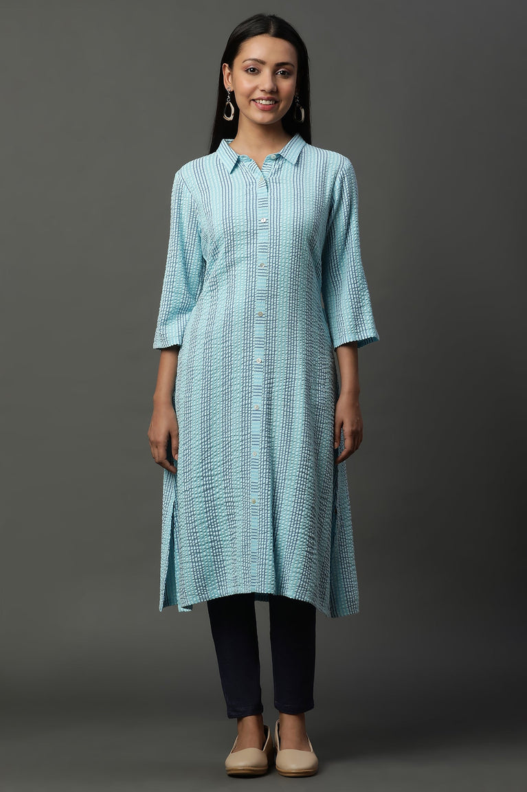 Blue Striped Yarn-Dyed Straight Kurta