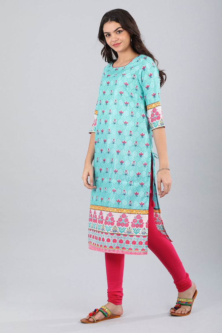 Blue Printed Straight kurta