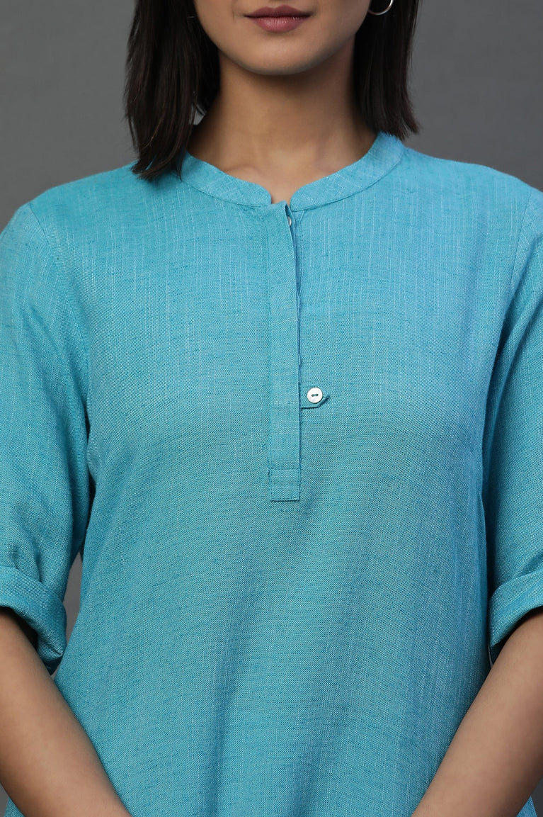 Blue Yarn-Dyed Solid Kurti
