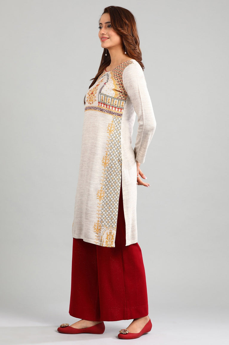 This refined yarn-dyed straight-cut kurta, crafted in luxurious rayon flax, is the epitome of understated elegance. Featuring a structured mandarin collar, it exudes a polished and sophisticated appeal, making it a versatile choice for both formal and semi-formal occasions. The crisp detailing and tailored silhouette offer a sleek and modern look, ensuring effortless style and comfort. Perfect for office wear, social gatherings, or evening outings, this kurta can be effortlessly paired with straight pants or trousers. Elevate the ensemble with classic footwear and minimal accessories for a timeless and distinguished appearance.