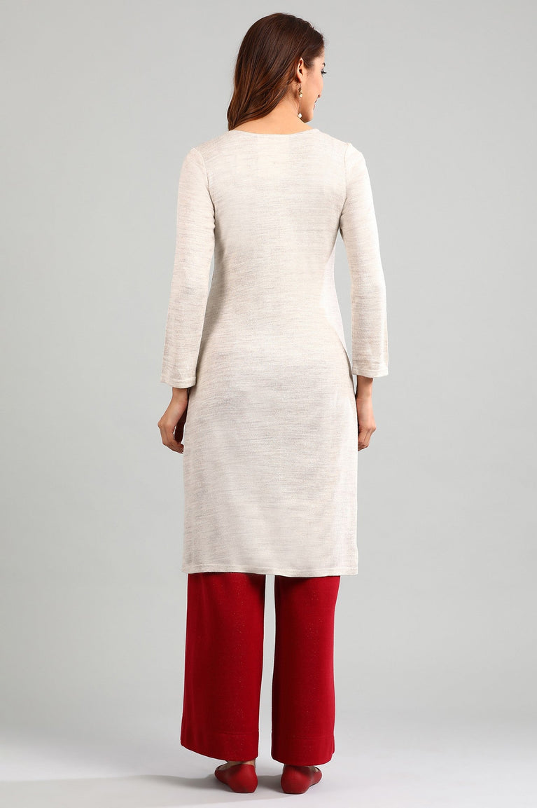 This intricately knitted kurta is a minimal and contemporary choice for all the days you want to keep things special and subtle. It's soft feel and body skimming fit is accented by soothing shades of blue.