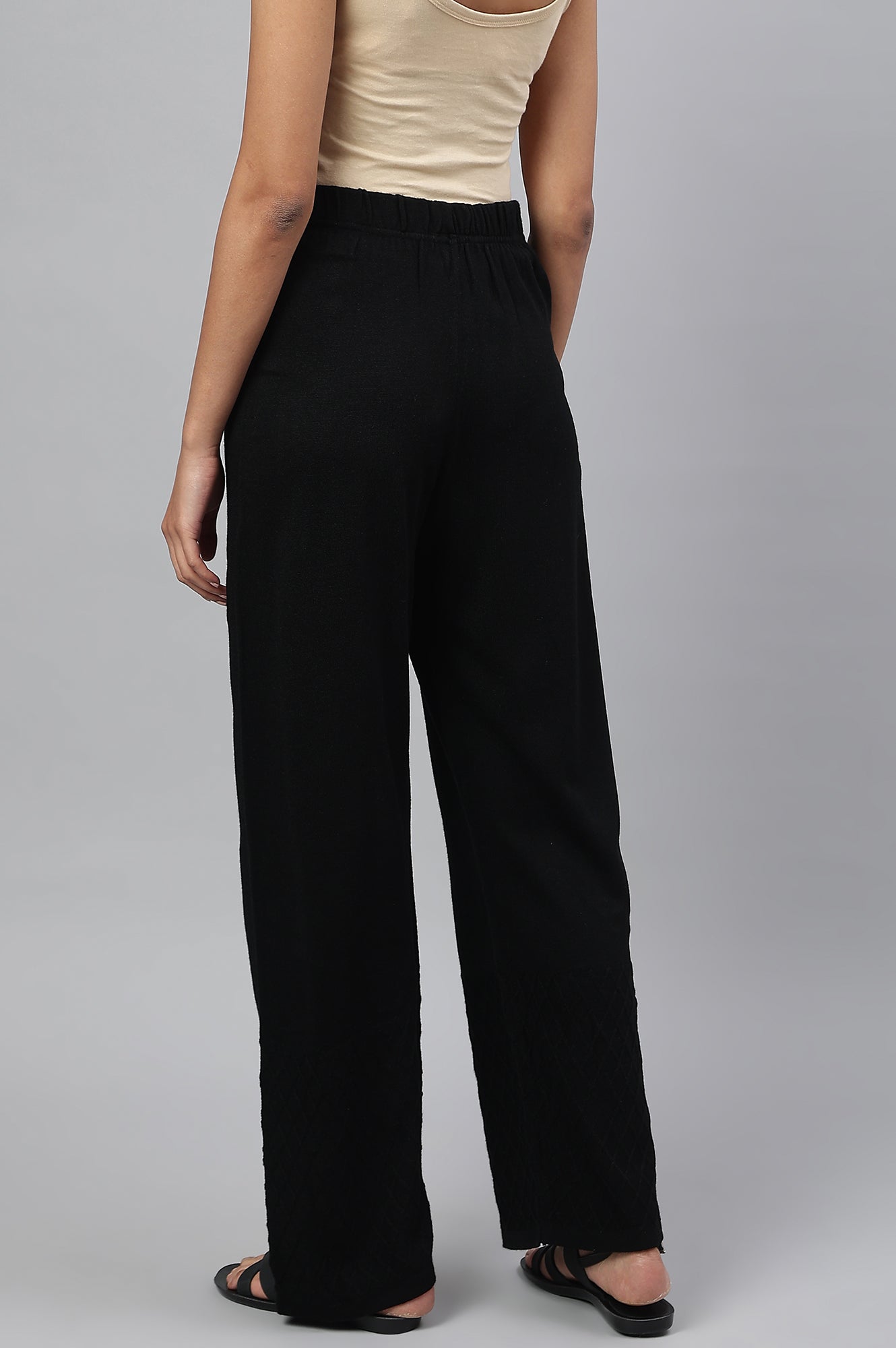 Black Ankle Length Straight Winter Palazzo